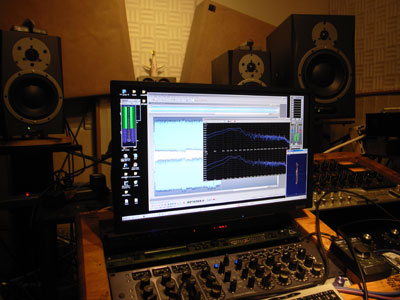 熊野さんのスタジオで、製作中の曲のMix Down。