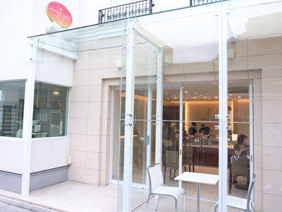 住宅街に溶け込む小さなガラス張りのテラスもあるカフェは、