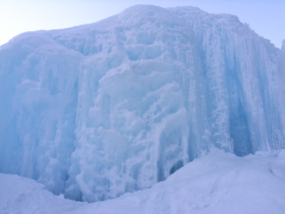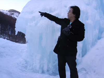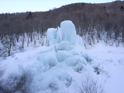 山から噴射した温水が自然に凍って出来た偶然的産物。