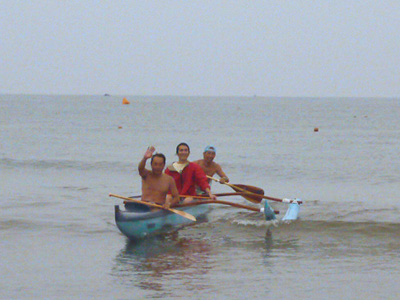 2時間くらいのクルージング後に、材木座に戻ってカヌーサーフィン!