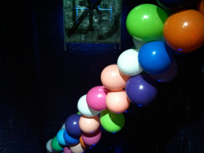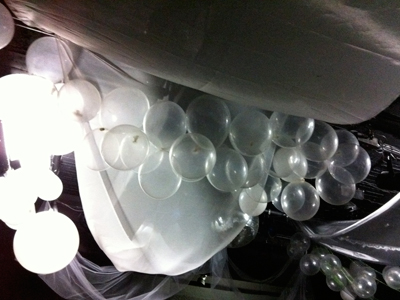 天井いっぱいにデコレーションされたバルーンとレースに包まれながら