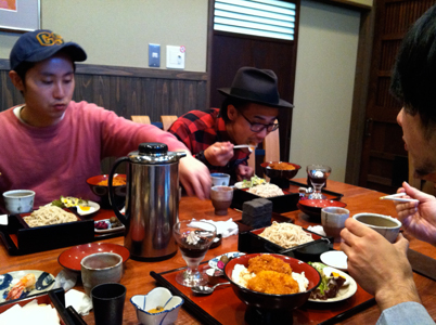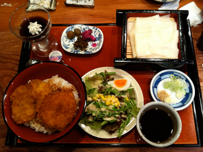 フルーティな日本酒を飲みながら、天婦羅や楽しみにしてたソースカツ丼に舌鼓。