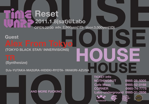 来年、2011年正月一発目のTIMEWARPは東京/eleven と 宮崎/Labo Underground。