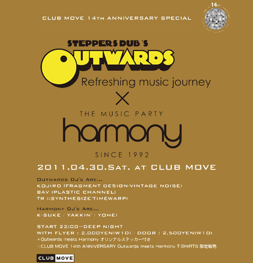 今週末、一年振りにCLUB MOVEでDJです! = CLUB MOVE 14th ANNIVERSARY SPECIAL = < OUTWARDS meets Harmony >